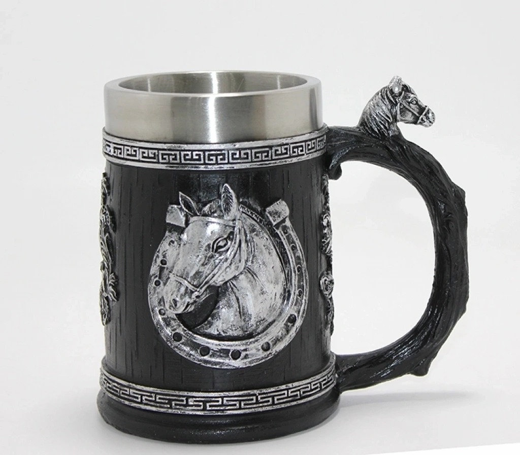 3d Kabartmalı At Büstü Paslanmaz Çelik Kupa Bardak Alk4475